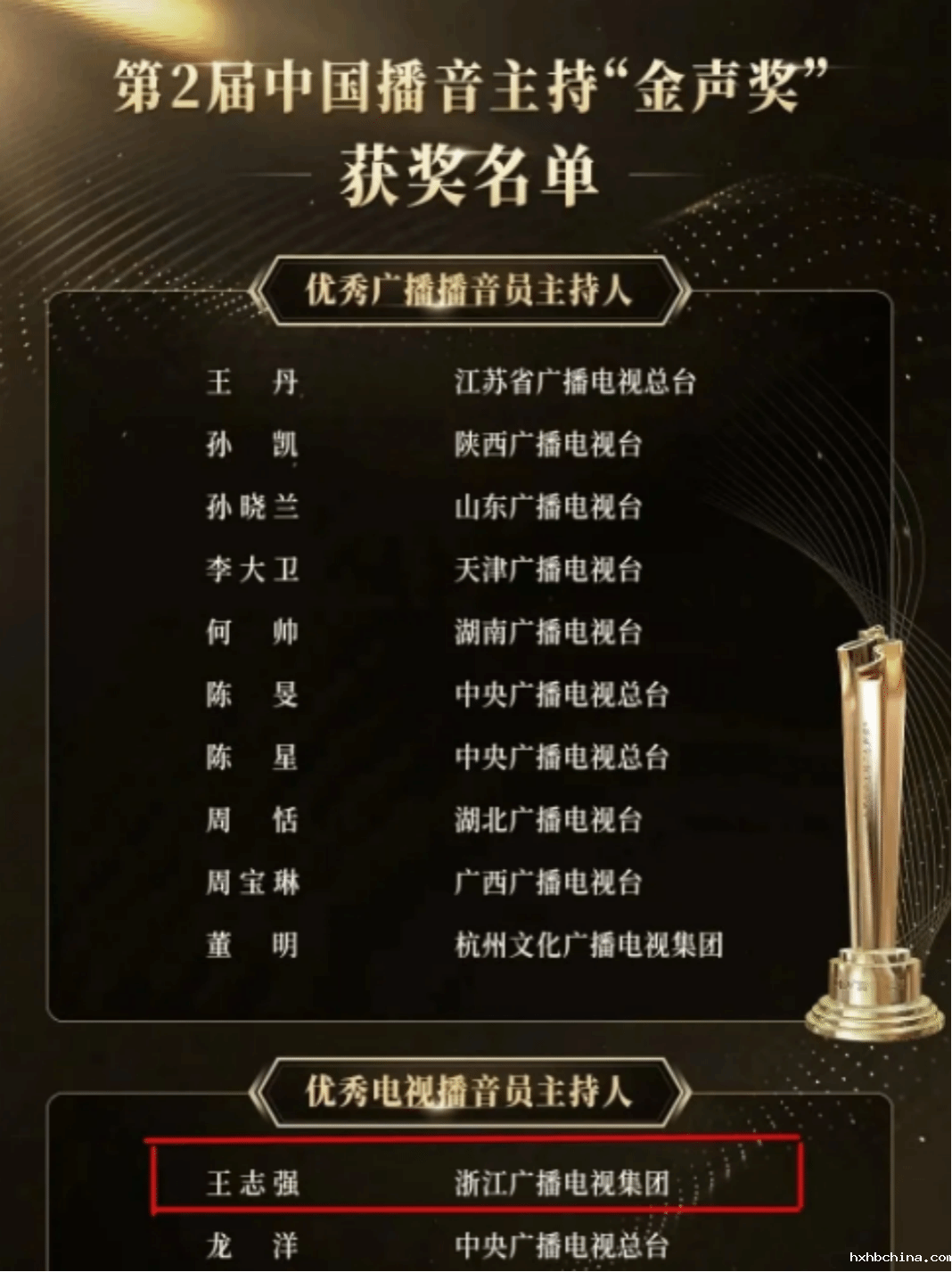 今年5月,小强荣获“金声奖”。该奖项是经中央批准、中国播音主持领域设立的国家级政府奖,也是播音主持领域的最高奖项。和他同期获奖的还有任鲁豫、龙洋等著名电视节目主持人。
